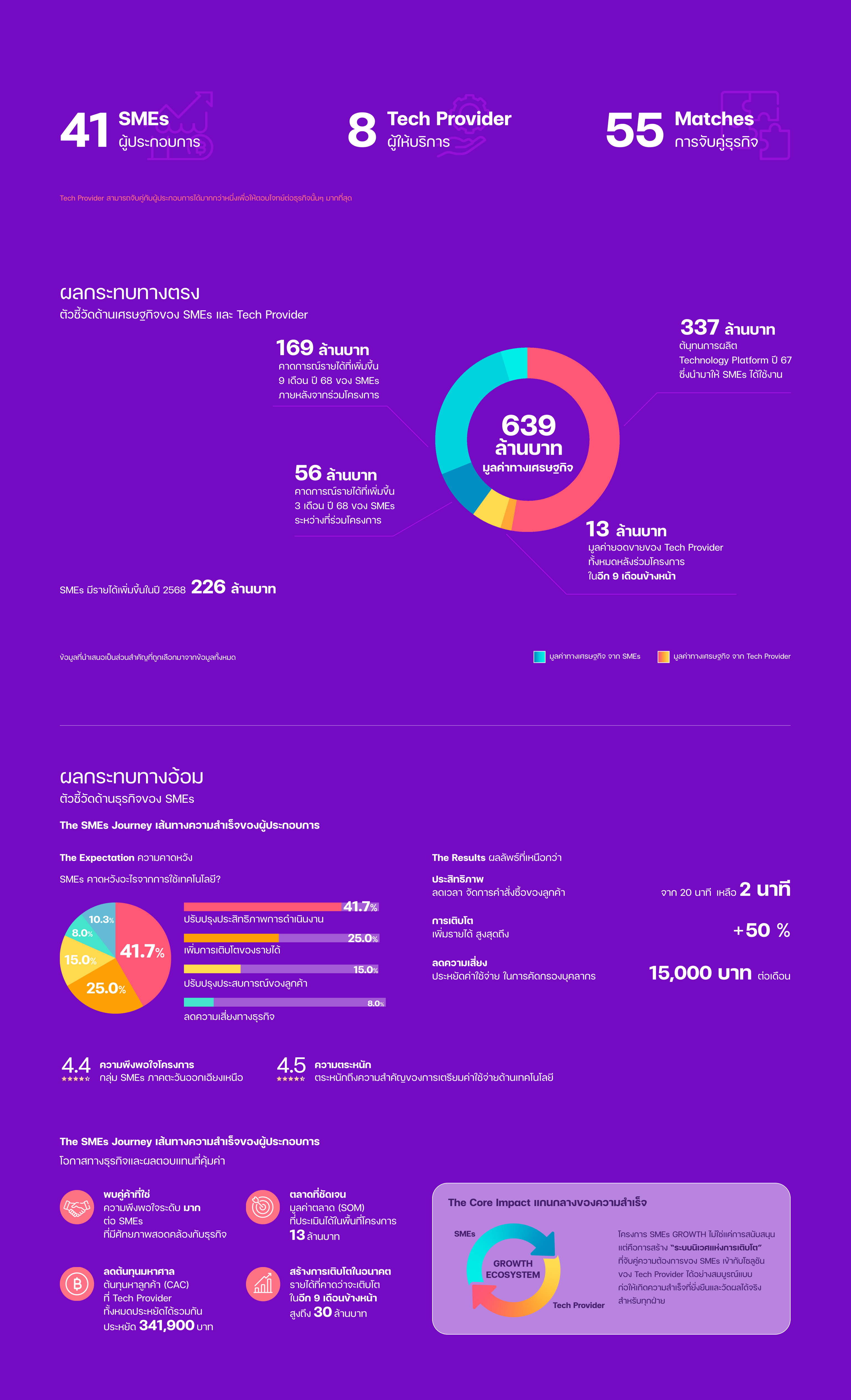 กิจกรรม “SMEs GROWTH” จึงเกิดขึ้นอีกครั้งในปีนี้ เพื่อต่อยอดความสำเร็จจากปีที่แล้ว โดยมุ่งเน้นการพัฒนานวัตกรรมดิจิทัลที่ตอบโจทย์ความต้องการของ SMEs ในพื้นที่มากยิ่งขึ้น ทำให้เกิดการยกระดับและต่อยอดความสามารถทางดิจิทัลของ SMEs อย่างไม่หยุดนิ่ง ซึ่งจะทำให้เศรษฐกิจดิจิทัลในพื้นที่ภาคกลางและภาคอีสานเติบโตอย่างยั่งยืนภายใต้แนวคิด พลิก SMEs ไทยให้เติบโตอย่างยั่งยืน